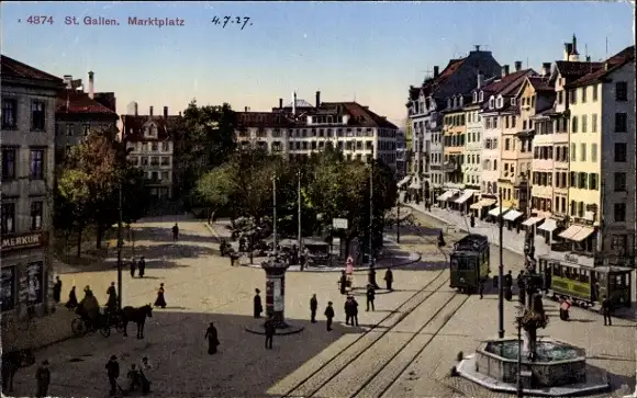 Ak St. Gallen Schweiz, Marktplatz, Straßenbahn