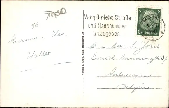 Zustand, siehe Scan, gelaufen, 1937 - ca 14 cm X 9 cm