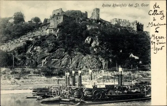 Ak St. Goar am Rhein, Burg Rheinfels, Dampfschiffe