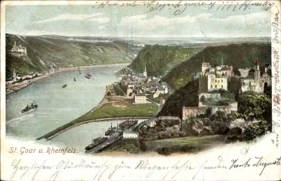 Ak St. Goar am Rhein, Panorama mit Rheinfels
