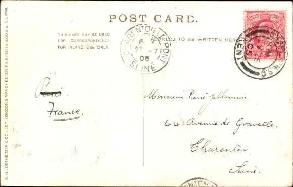 Zustand, siehe Scan, gelaufen, 1905 - ca 9 cm X 14 cm
