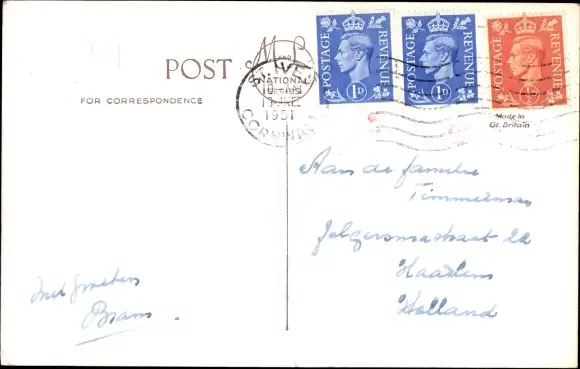 Zustand, siehe Scan, gelaufen, 1951 - ca 14 cm X 9 cm