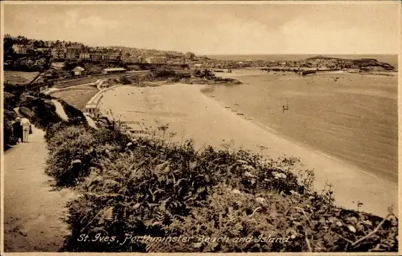 Ak St Ives Cornwall England, Porthminster Strand, Insel