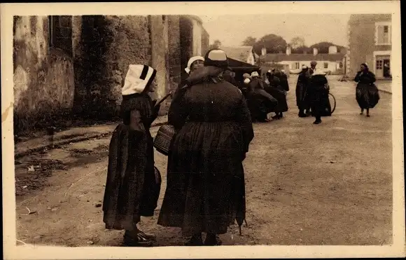 Ak St. Jean de Monts Vendée, Place de l'Eglise, Frauen in Trachten