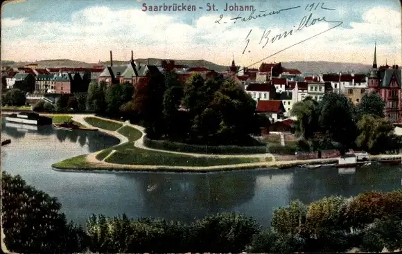 Ak St. Johann Saarbrücken, Gesamtansicht des Ortsteils mit Saar