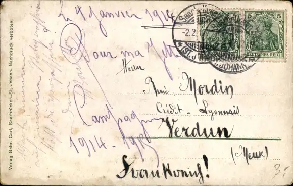 Zustand siehe Scan, 1914, gelaufen - ca 14 cm X 9 cm
