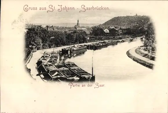 Ak St Johann Saarbrücken im Saarland, Saar, Lastkähne