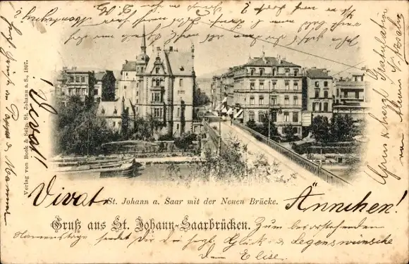 Ak St. Johann Saarbrücken im Saarland, Teilansicht, Neue Brücke