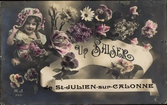 Ak St. Julien sur Calonne Calvados, Un Baiser, Fleurs