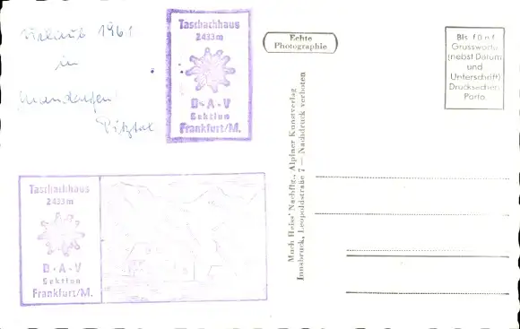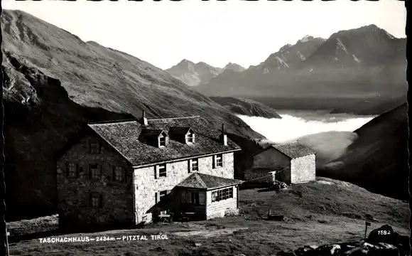 Ak St. Leonhard im Pitztal in Tirol, Das Taschachhaus mit Alpen