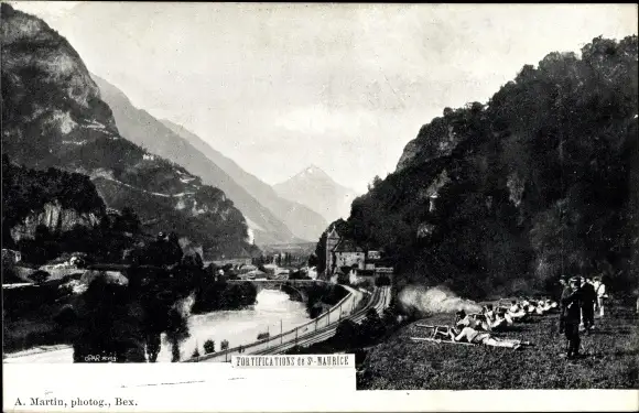 Ak St Maurice Kanton Wallis Schweiz, Panorama, Fortifications