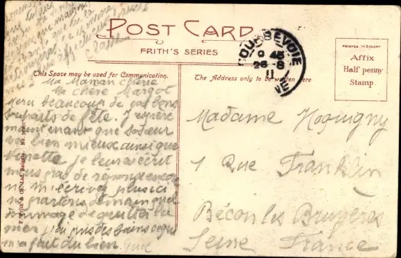 gelaufen 1911, Eckknick links oben, Ecken bestoßen, sonst guter Zustand