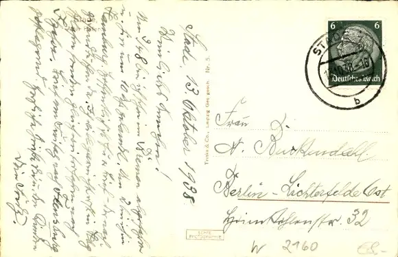 Zustand, siehe Scan, gelaufen, 1938 - ca 14 cm X 9 cm