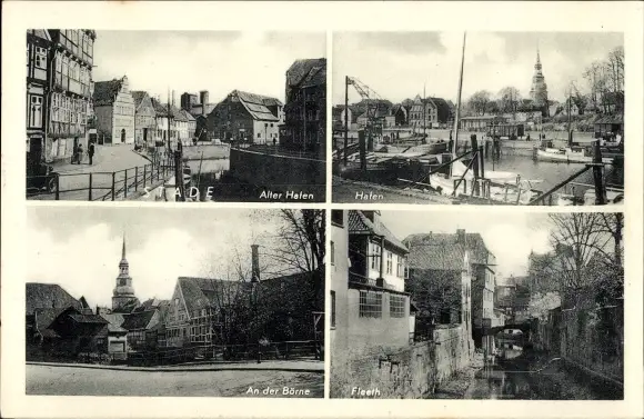 Ak Stade Elbe, alter Hafen, Börne Partie, Fleeth