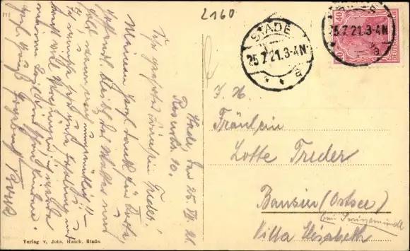 Zustand, siehe Scan, gelaufen, 1921 - ca 14 cm X 9 cm