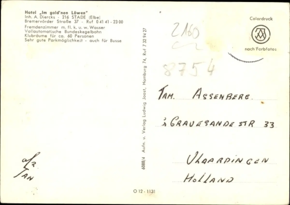 Ak Stade in Niedersachsen, Hotel Im gold'nen Löwen, Bremervörder Str. 37