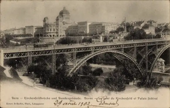 Ak Stadt Bern Schweiz, Kirchenfeldbrücke und Bundesgebäude