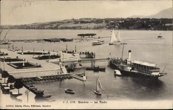 Ak Stadt Genf Schweiz, Gesamtansicht, Hafen, Dampfer "France", Segelboote