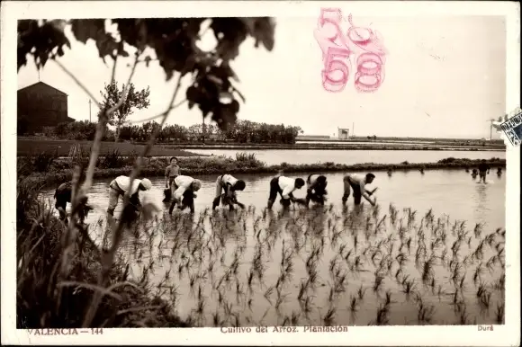 Ak-Stadt Valencia, Spanien, Reisanbau. Plantage