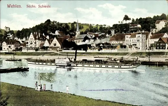 Ak Stadt Wehlen Elbe, Teilansicht, Dampfer König Georg