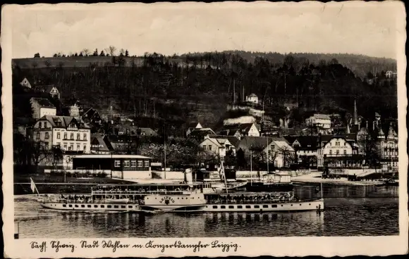 Ak Stadt Wehlen an der Elbe Sachsen, Ortsansicht, Konzertdampfer Leipzig
