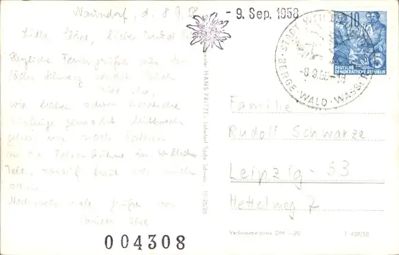 Zustand, siehe Scan, gelaufen, 1958 - ca 14 cm X 9 cm