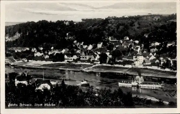 Ak Stadt Wehlen an der Elbe Sächsische Schweiz, Gesamtansicht, Schiff