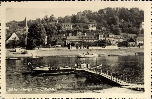 Ak Stadt Wehlen sächs. Schweiz, Ortsansicht mit Elbe, Fähre
