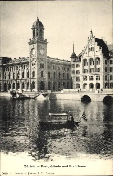 Ak Stadt Zürich Schweiz, Postgebäude und Stadthaus