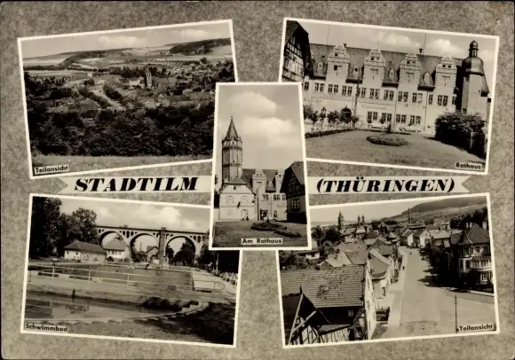 Ak Stadtilm in Thüringen, Panorama, Teilansicht, Rathaus, Schwimmbad