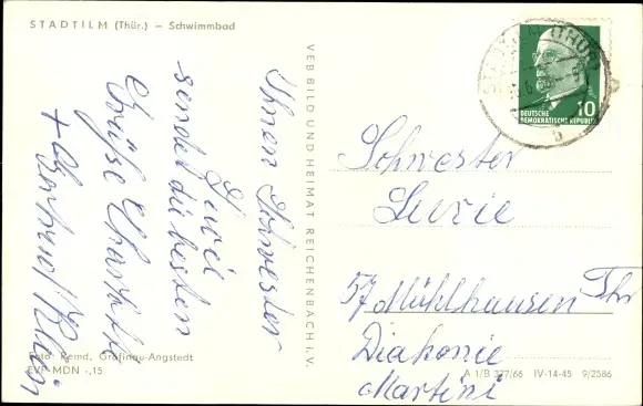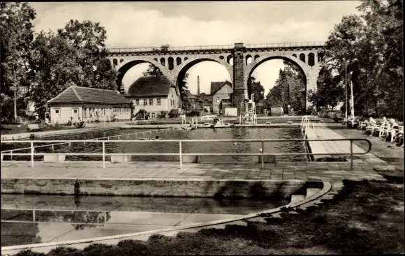 Ansichtskarte, Postkarte, Badeanstalt, Schwimmbad, Freibad, Strandbad, Volksbad