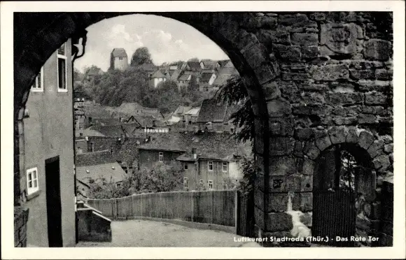Ak Stadtroda in Thüringen, Blick durch das Rote Tor
