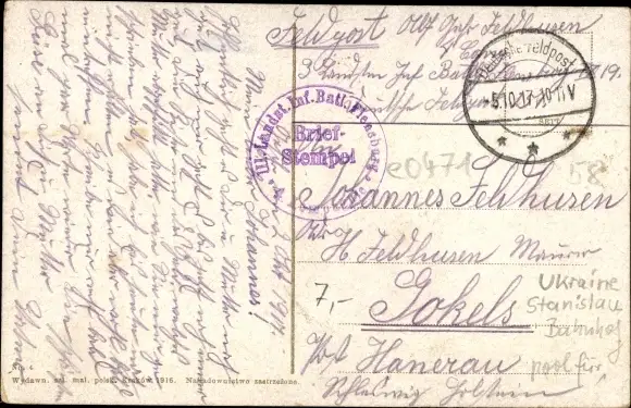 Zustand, siehe Scan, gelaufen, 1917 - ca 14 cm X 9 cm