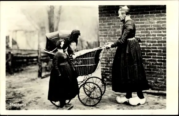 Ak Staphorst Overijssel Niederlande, Familienbild, Frau mit ihren Kindern