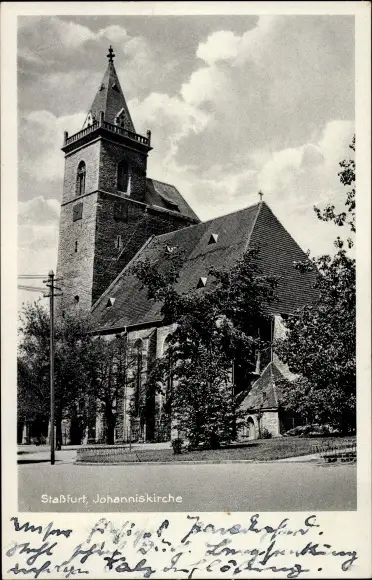 Ak Staßfurt im Salzlandkreis, schiefe Johanniskirche