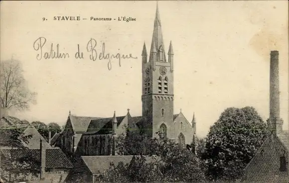Ak Stavele Alveringem Westflandern, Panorama, Kirche