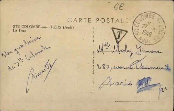 Ak Ste-Colombe sur l'Hers Aude, Brücke