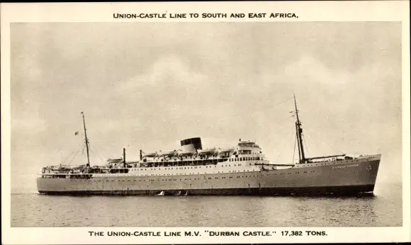 Ak Steamer Durban Castle, Dampfschiff, Union Castle Line UC