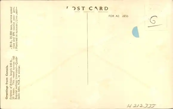 Ak Steamer Empress of Britain, Dampfschiff, CPS