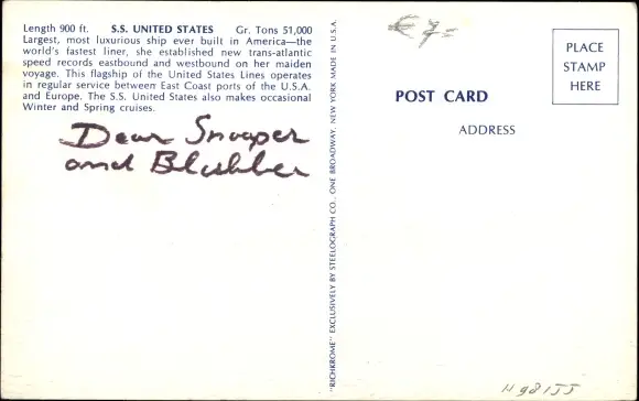 Ak Steamer SS United States, Dampfschiff, United States Lines, USL