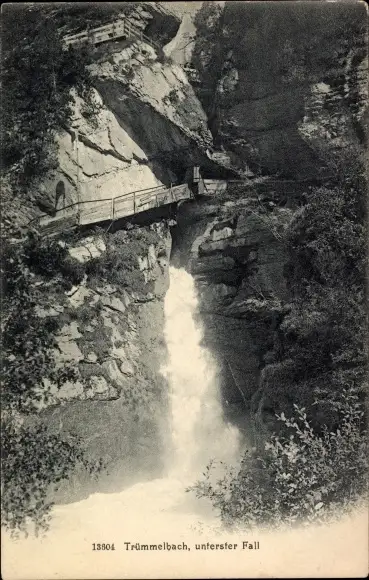 Ak Stechelberg Kanton Bern, Trümmelbachfälle, unterster Fall