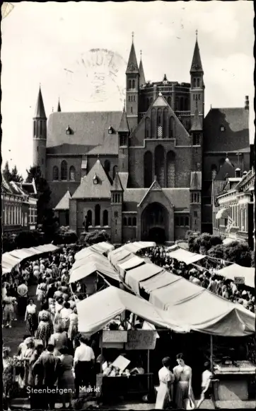 Ak Steenbergen Nordbrabant, Markt, Marktstände, Kirche