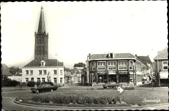 Ak Steenwijk Overijssel, R.K. Kerk, Kreisverkehr