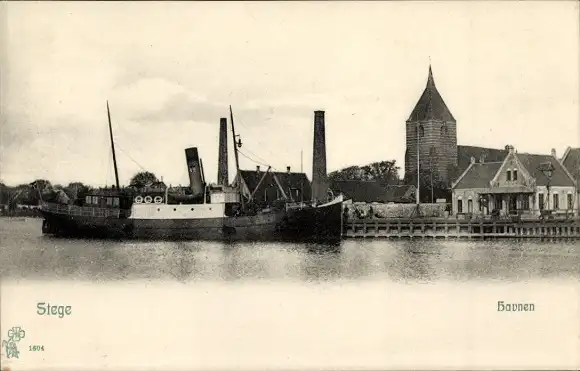 Ak Stege Insel Mon Dänemark, Hafen, Kirche, Dampfschiff