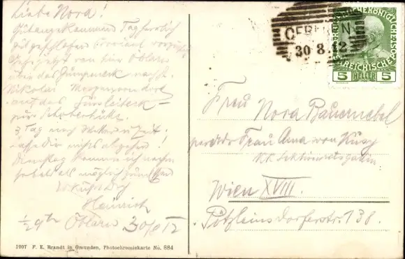 Zustand, siehe Scan, gelaufen, 1912 - ca 14 cm X 9 cm