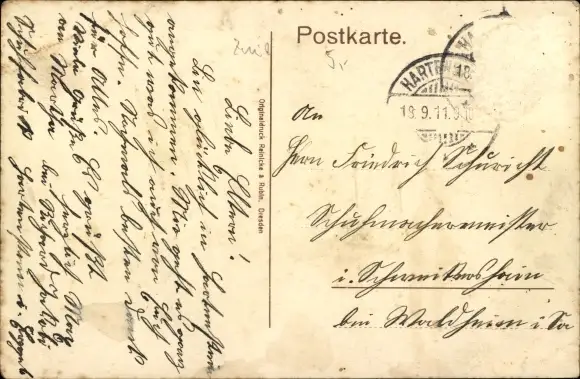 Zustand, siehe Scan, gelaufen, 1911 - ca 14 cm X 9 cm