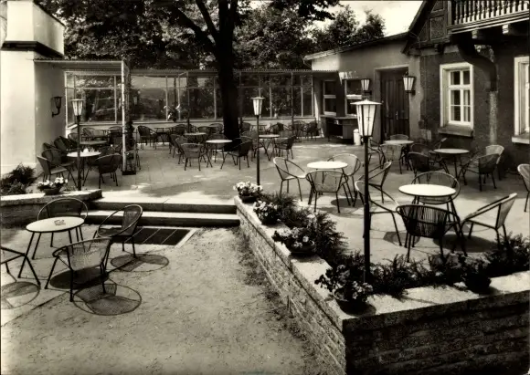 Ak Steina in Sachsen, Berggaststätte Schwedenstein, Terrasse