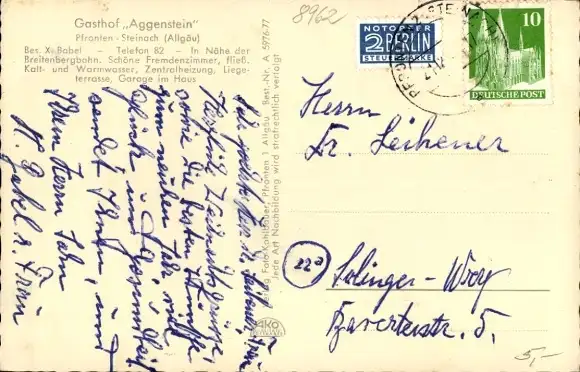 Ak Steinach Pfronten im Allgäu, Gasthof "Aggenstein"