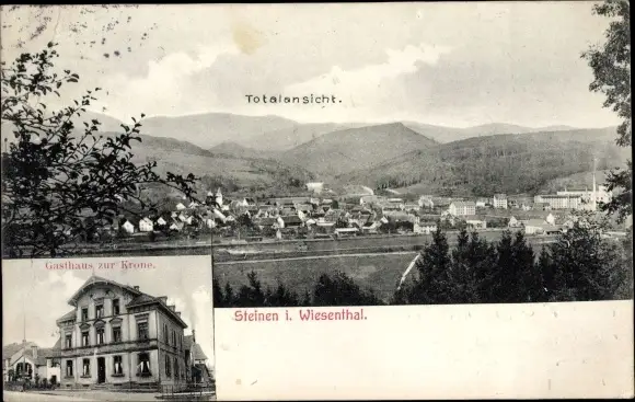 Ak Steinen im Wiesental in Baden, Totalansicht, Gasthaus zur Krone