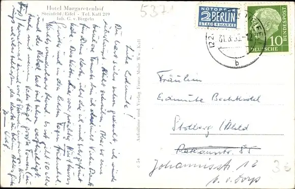 Zustand, siehe Scan, gelaufen- Inh. G. v. Birgeln - ca 9 cm X 14 cm